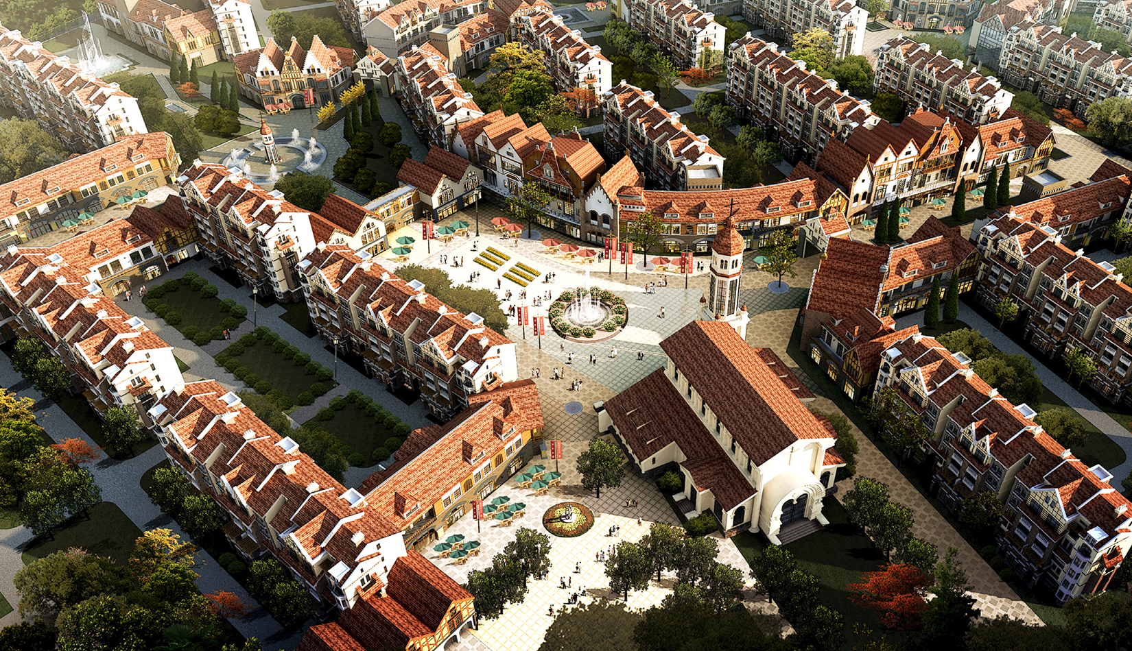 南島小鎮(zhèn)混合功能步行街是小鎮(zhèn)的主要公共空間、街道,承載了小鎮(zhèn)的公共服務(wù)設(shè)施、旅游配套設(shè)施,形成反映社區(qū)文脈的網(wǎng)絡(luò)。街道建筑體量、空間尺度宜人,重要節(jié)點(diǎn)處的建筑做創(chuàng)造性夸張,以產(chǎn)生獨(dú)特的使用及視覺空間。