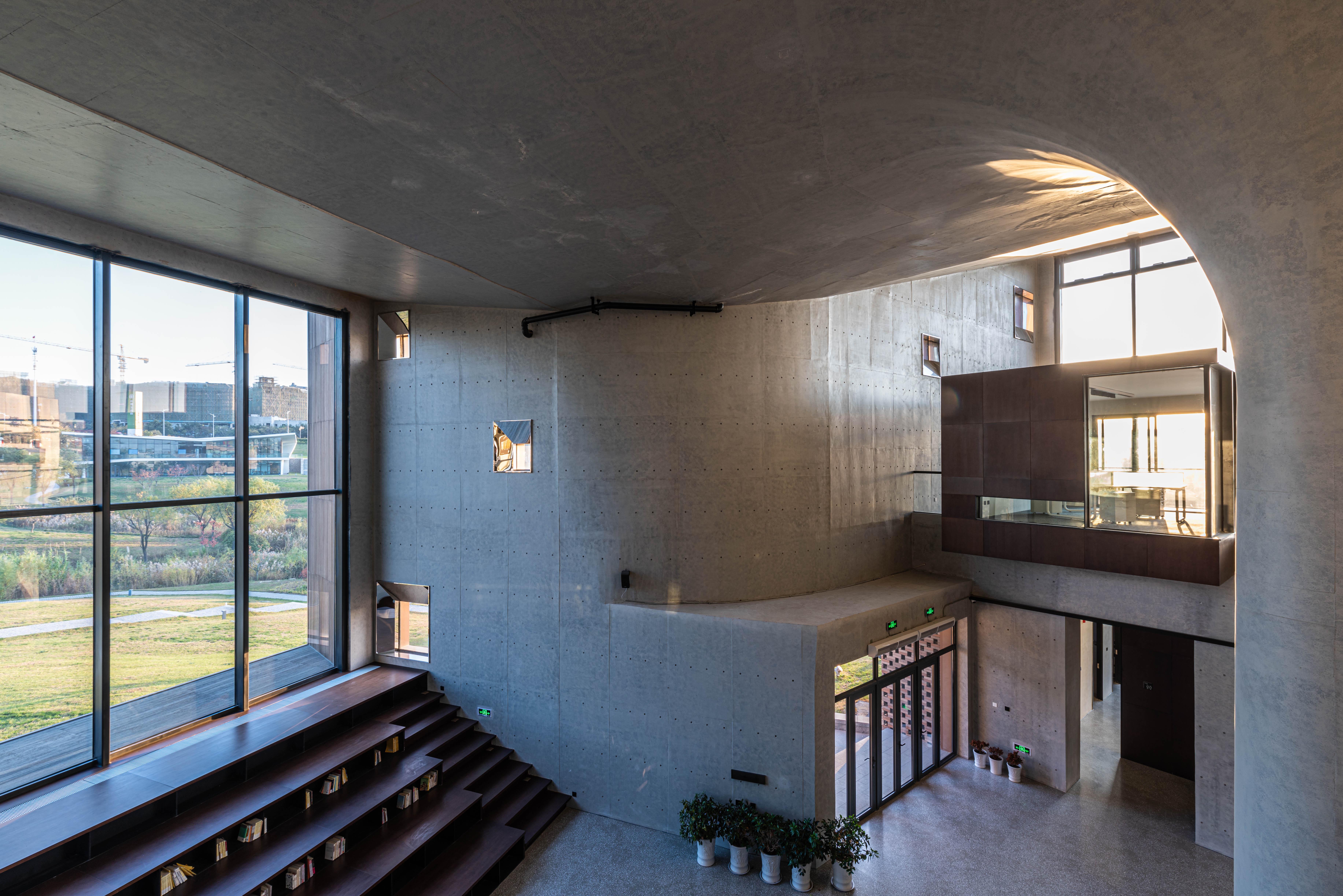 接待大廳、休息區(qū)、展覽區(qū)、室內(nèi)小劇場、辦公區(qū)、會議區(qū)、室外小劇場和自然環(huán)境相互交融并置,相互之間流線獨立又彼此滲透。