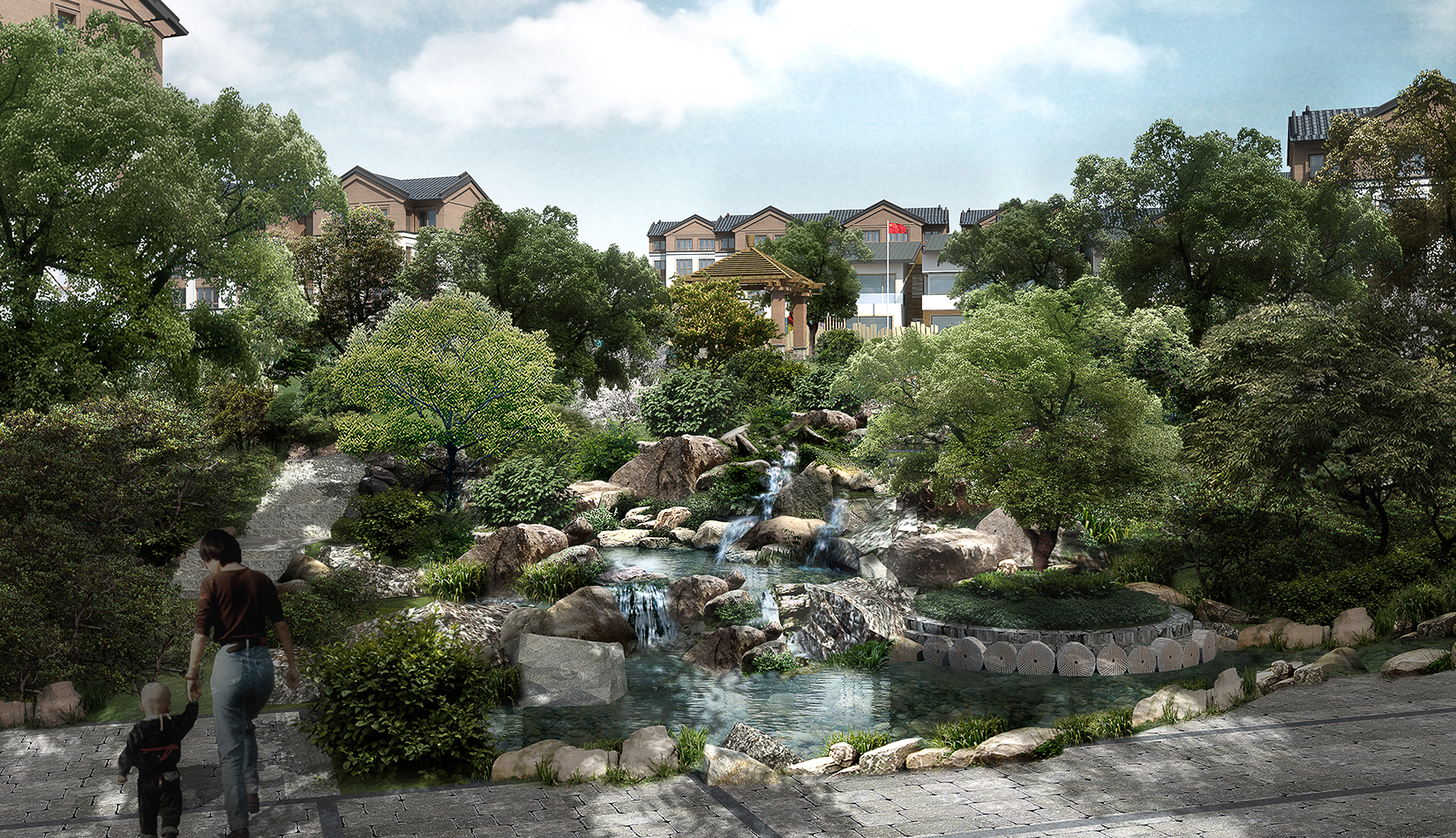 以“鄉(xiāng)村振興” 為背景,以“藏馬山居生活”為目標核心,項目把東方田園與住區(qū)生活融為一體、貫穿自然生態(tài)、海綿城市的設(shè)計理念。景觀設(shè)計挖掘藏馬山的特色文化,延續(xù)當?shù)鼐G色生態(tài)、山野趣味的自然風貌,通過場景化的展示,融入到景觀設(shè)計中,打造特點鮮明、各有特色的入口體驗、商業(yè)街區(qū)、山居生活三大板塊。