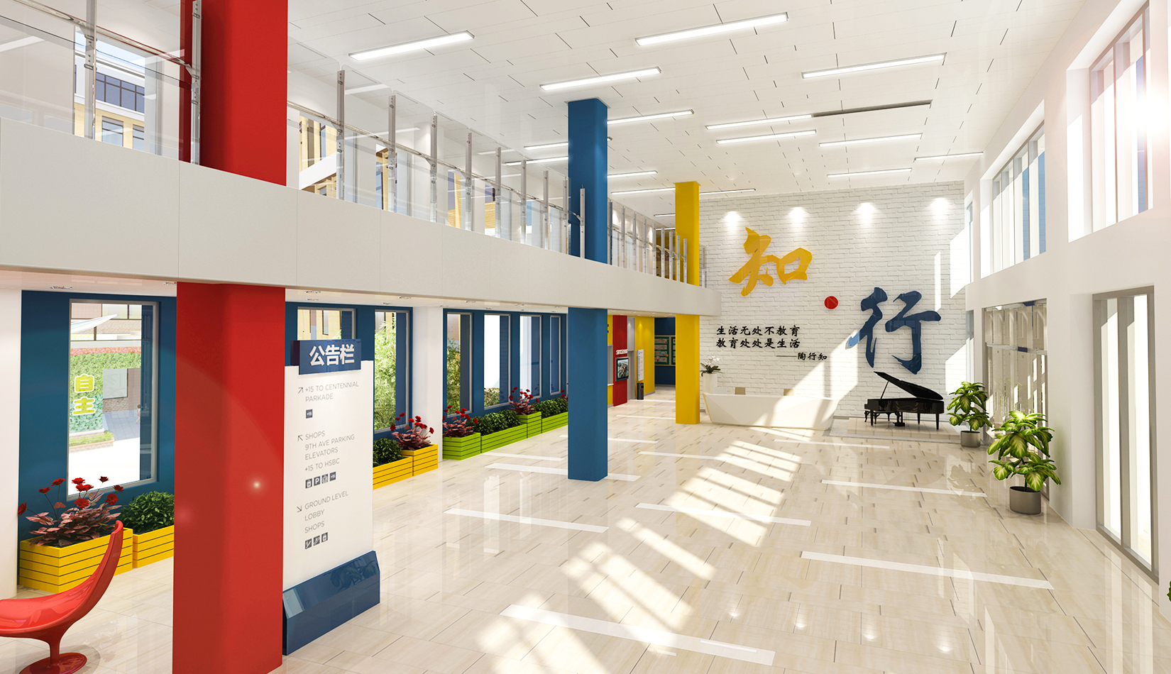 設計追求空間設計的前瞻性,深入揣摩材質、工藝與造型之間的關系,力圖體現(xiàn)現(xiàn)代化小學空間輪廓;設計堅持以“人”為本的校訓,強調人性化設計,因此注重生態(tài)、綠色、節(jié)能、環(huán)保、文化空間功能,輔以材質、色彩的表達,為寧夏路小學營造出了人性的、功能的、標志化效果,為孩子創(chuàng)造-一個良好的視覺環(huán)境和心理健康發(fā)展的氛圍。
