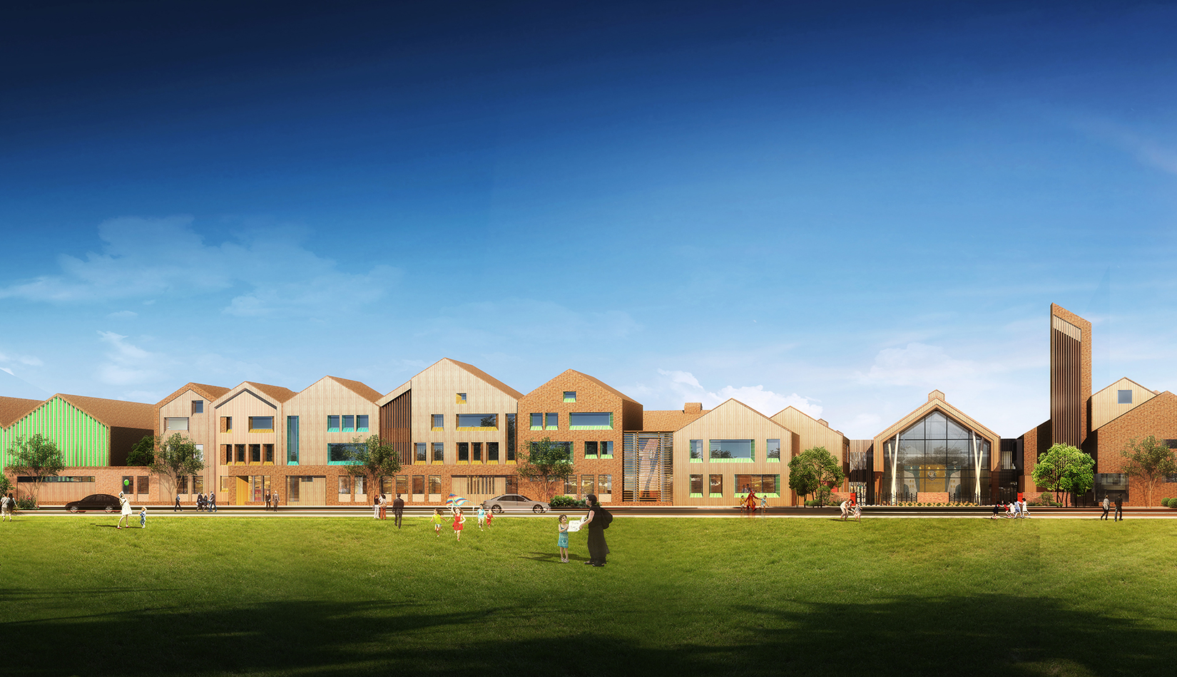 該項目設(shè)計以“陽關(guān)小鎮(zhèn)”為設(shè)計概念,采用“城鎮(zhèn)”規(guī)劃布局,通過引入街道、廣場、庭院等元素,將校園空間打造為小鎮(zhèn)場景,讓學(xué)生感受城市氛圍及生活氣息。