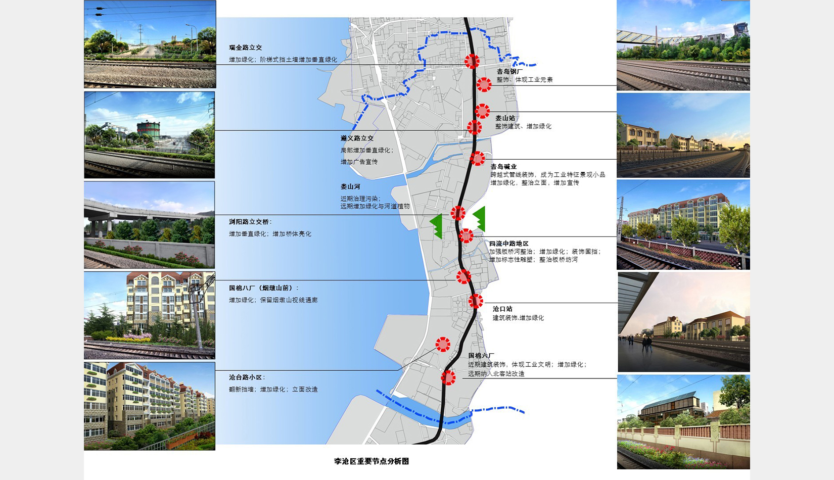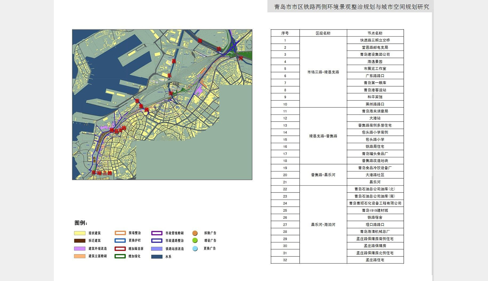 按照”一個目標、分期實施、統(tǒng)一組織”的總體要求,規(guī)劃將鐵路沿線打造成為:體現(xiàn)青島城市規(guī)劃建設與管理水平的窗口; 展示青島城市熱情友好與和諧的笑臉;感受青島特色魅力與城市功能優(yōu)化提升的風景線。