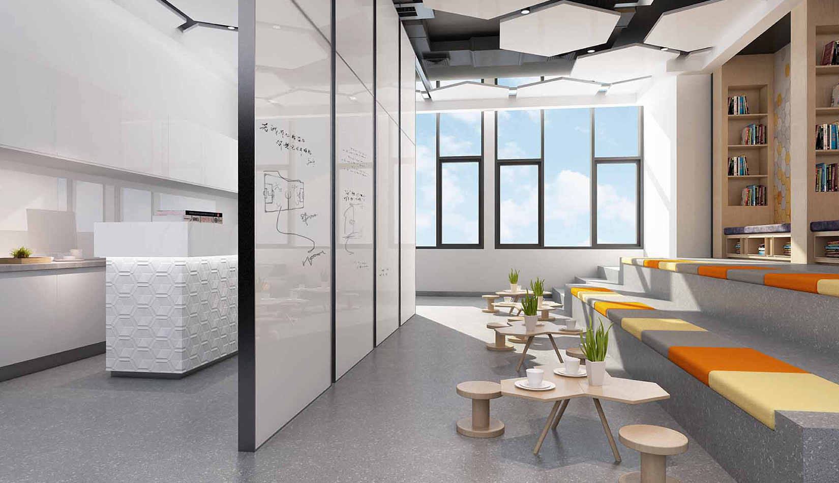 前臺營造一種開放式的交流空間,為入住者提供一個充滿活力的社交空間、資源共享空間、閱讀空間,包括水吧、讓你放松的圖書館,還可承辦各種活動,時尚的設計以及獨特的個性,便于大家面對面溝通和社交體驗。